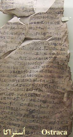 روی سنگ و قطعات سفال هم مینوشتند و به آن اُستراکا Ostraca میگفتند. در بررسیها و حفاری محوطههای باستانی نمونههایی از آن بهدست آمدهاست.
